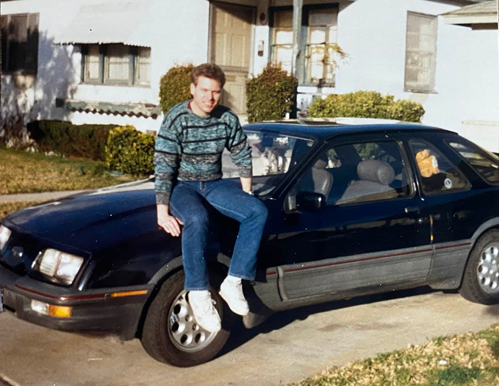 Christopher Simmons, with Mindset company car, 1988